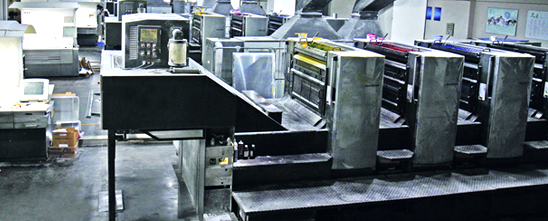 浙江人民美術(shù)出版社組織年輕編輯到浙江海虹彩色印務(wù)有限公司現(xiàn)場(chǎng),借大型圖集《中國(guó)文化史跡》十二卷開(kāi)印之機(jī),向年輕編輯講解傳授彩色、黑白圖像印刷開(kāi)機(jī)時(shí)的調(diào)試看樣技巧。